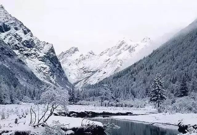 鲁朗林海风光优美远处的雪山、冰川与近处的原始森林、村落、河流交相辉映冬日的鲁朗银装素裹像是大气磅礴的白龙宫