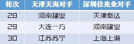中超最后三轮,天津天海与深圳佳兆业的对手情况。