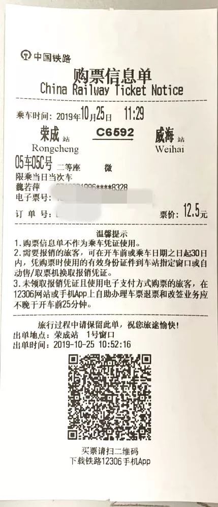 2、G字、D字开头的的高铁动车乘车范围在荣成——即墨北(含即墨北)以内的所发售车票为电子客票。