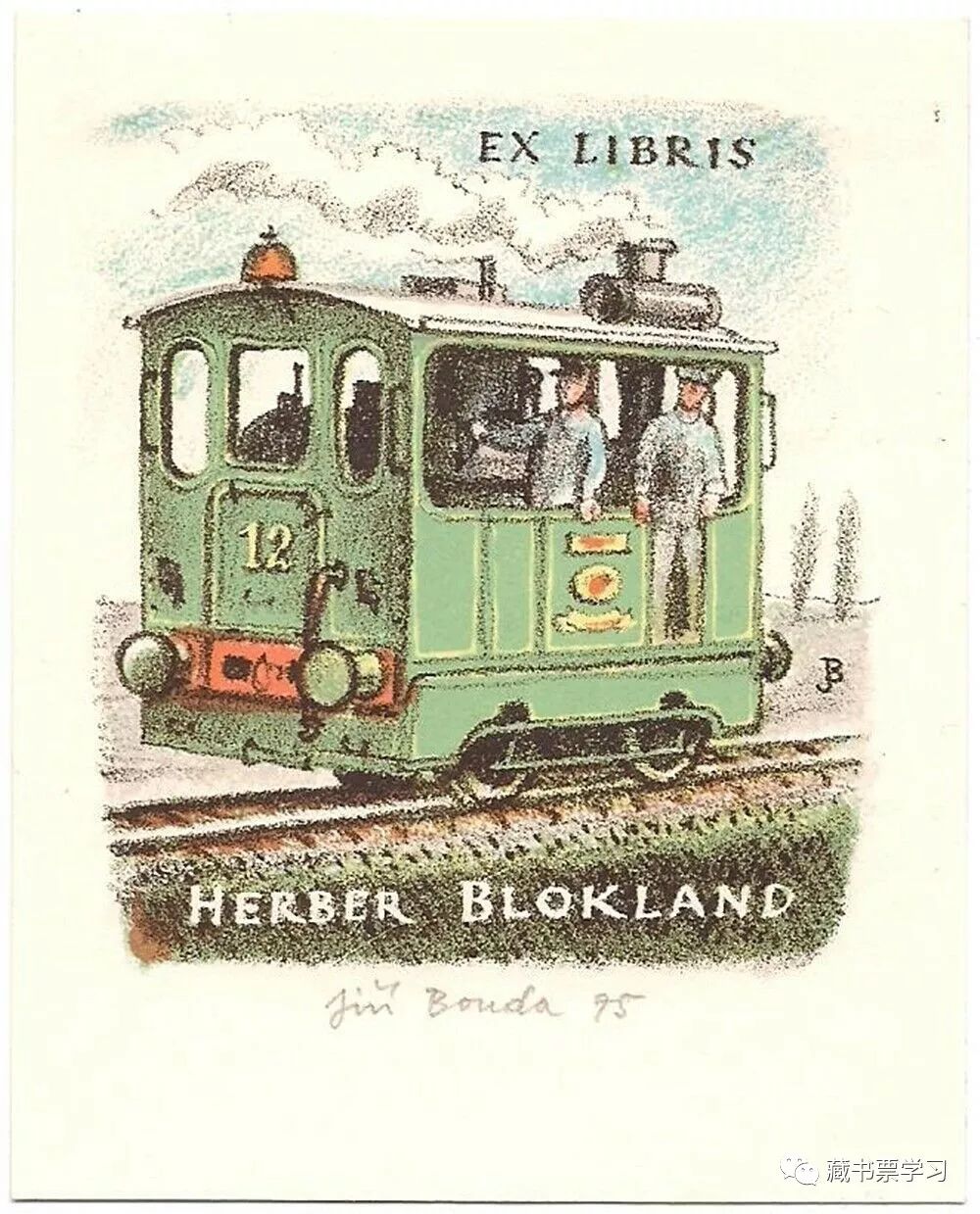 还是Bouda最典型的火车题材,票主Herber Blokland,生平不详,但是个藏书票爱好者。他订做的藏书票种数在30款以上,包括老Bouda、库哈尼克、苏察尼克等都给他做过。