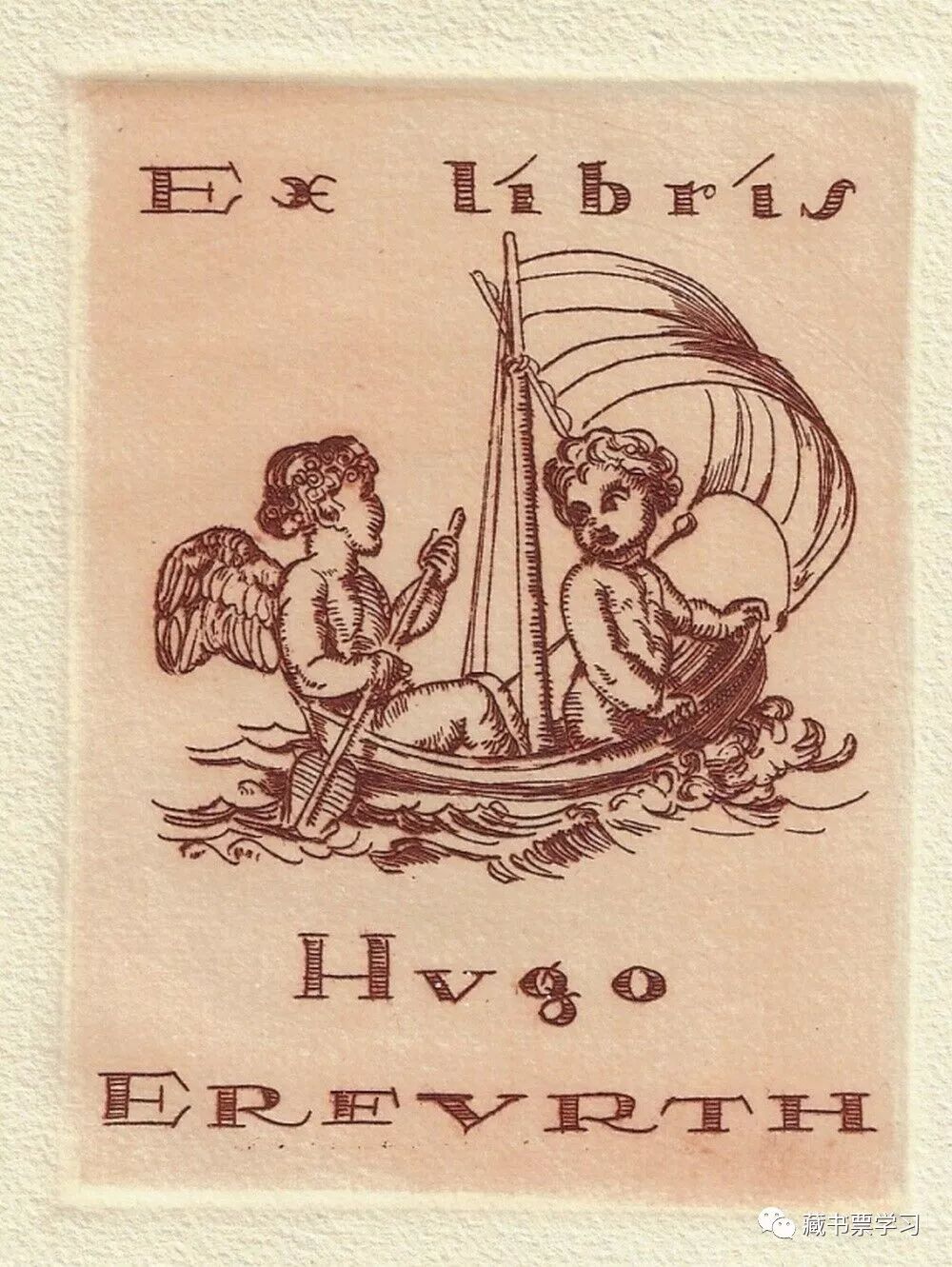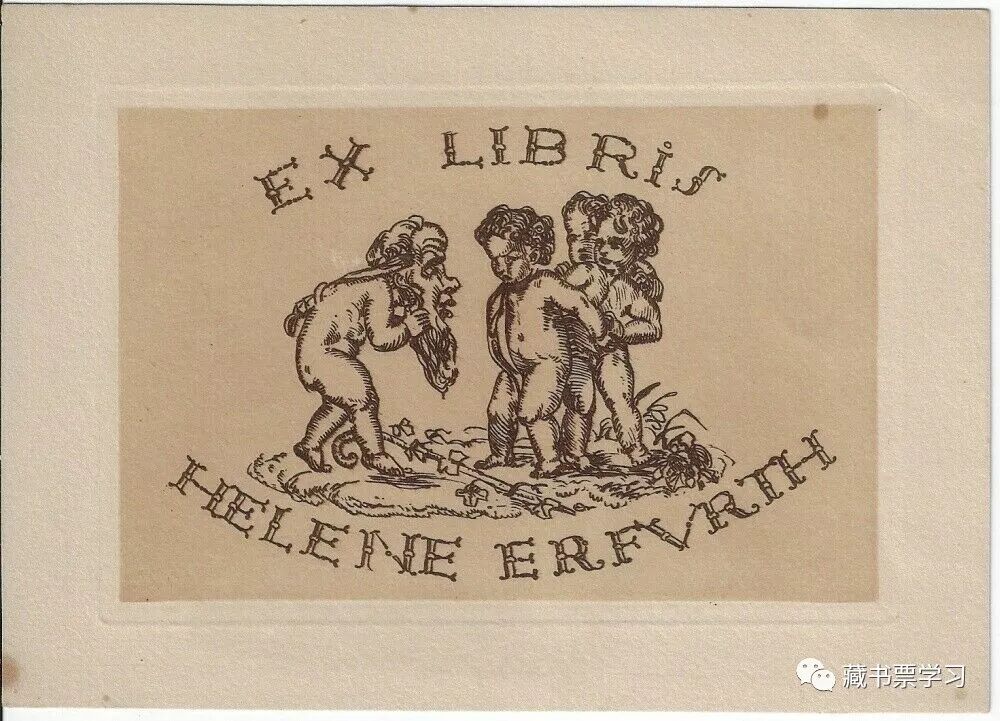 这款铜版藏书票作者待考,但共有一对。除了埃尔福兹这张,他的夫人也有一款,价格不贵,我犹豫了下,恐战线拉得太长无休无止,于是没买。