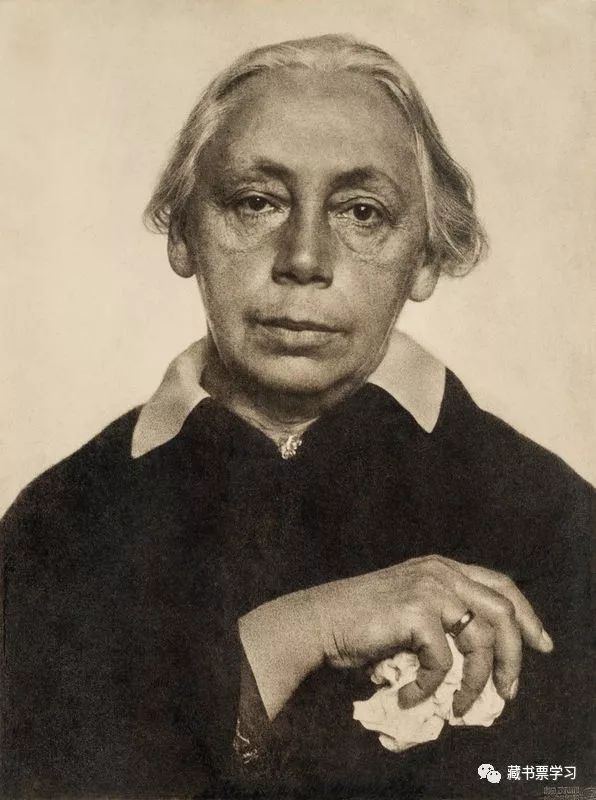 照相术发明于19世纪,花了半个多世纪才逐渐站稳脚跟。有些艺术家刚开始学画画,随着照相技术对写实绘画的全面碾压,就改行摄影了。这张藏书票的票主埃尔福兹(1874-1948)也是其中之一,他的摄影风格被归为绘画主义(Pictorialism)——通过摄影过程中的技术干预,以及高质量的冲印,使照片呈现出古典时期肖像画一般的高贵感。埃尔福兹后来成为20世纪初德国最著名的人物肖像摄影家之一,中国版画圈很熟悉的下面这张柯勒惠支的经典像即出自他之手。