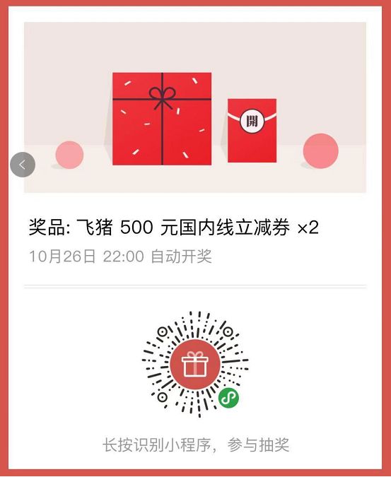下周11月一开始,各种促销就开始了,飞猪上的机票活动也会多起来。周末送两张福利,飞猪国内机票,满501减500优惠券!相当给力!大家试试运气,今晚开奖,获奖的同学在获奖信息中留下飞猪ID即可