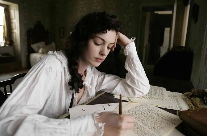 在《成为简·奥斯丁》里,她可以是优雅知性的作家。