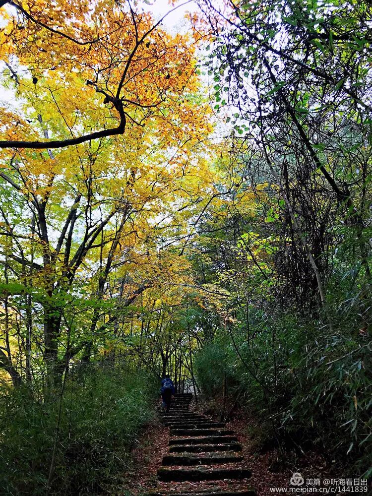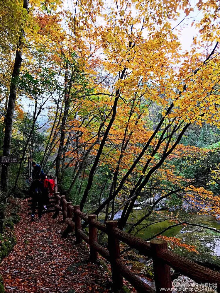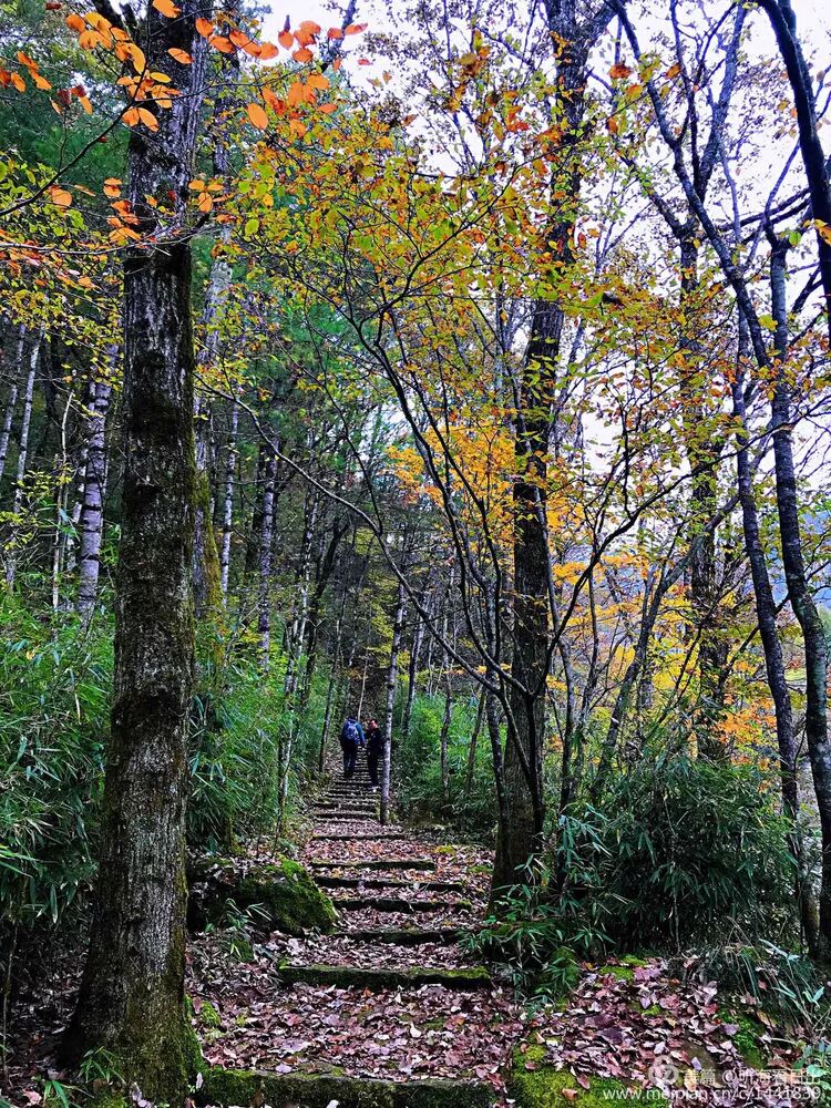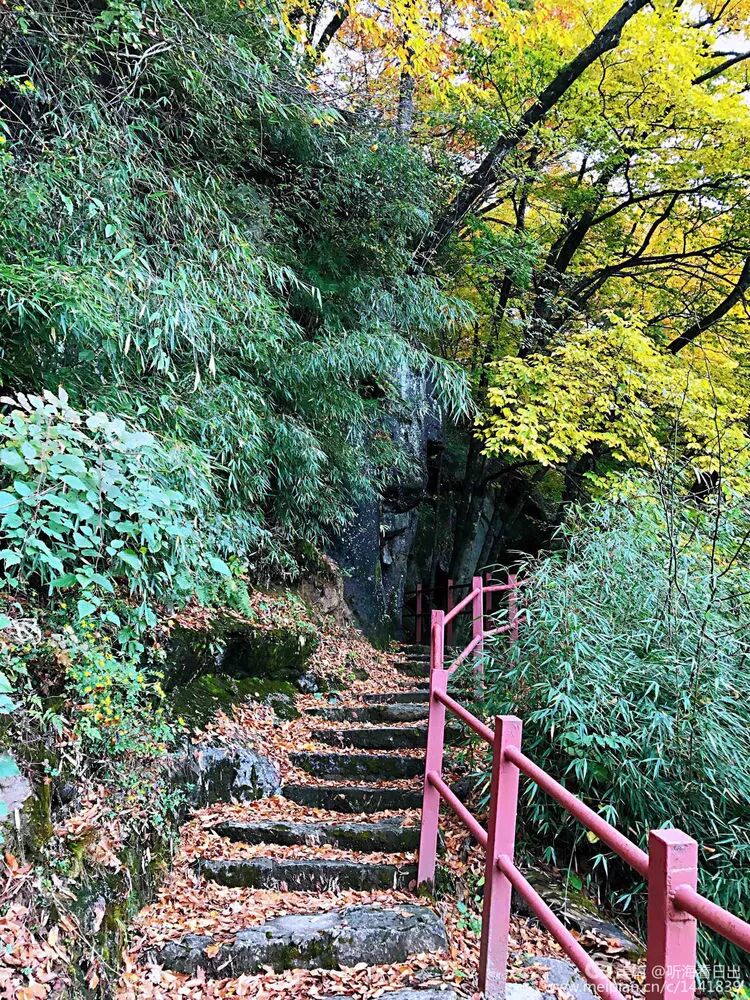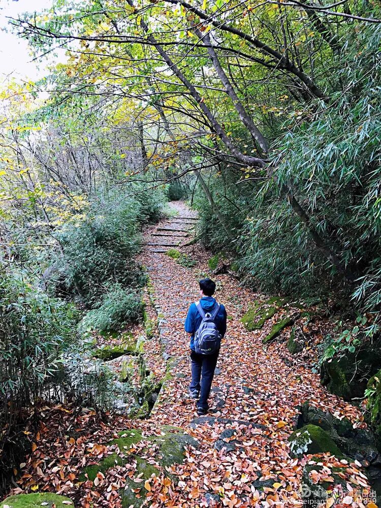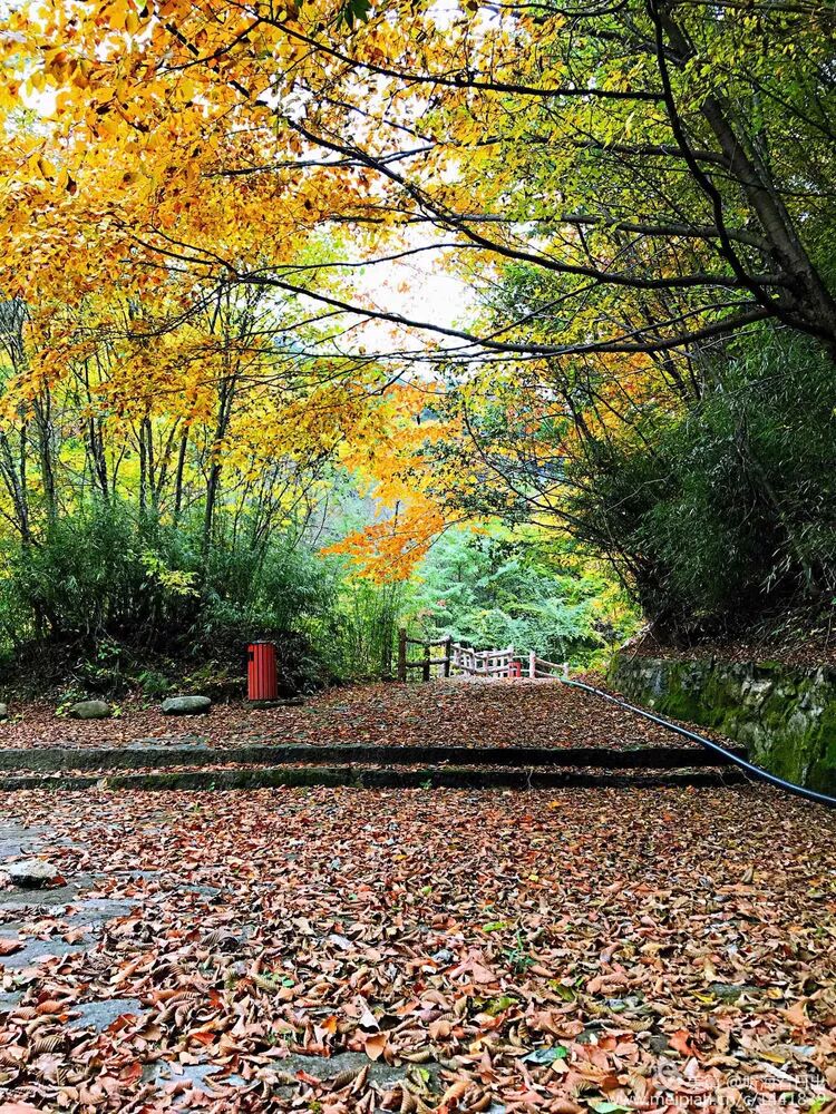 景区的路都是清一色石条铺成,上面已落满了树叶,远远望去别有一番秋韵。