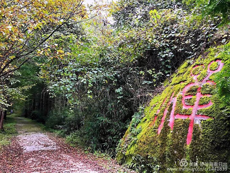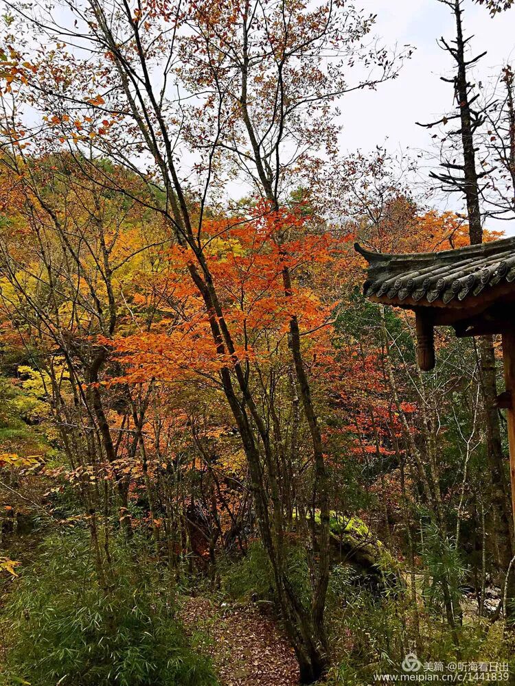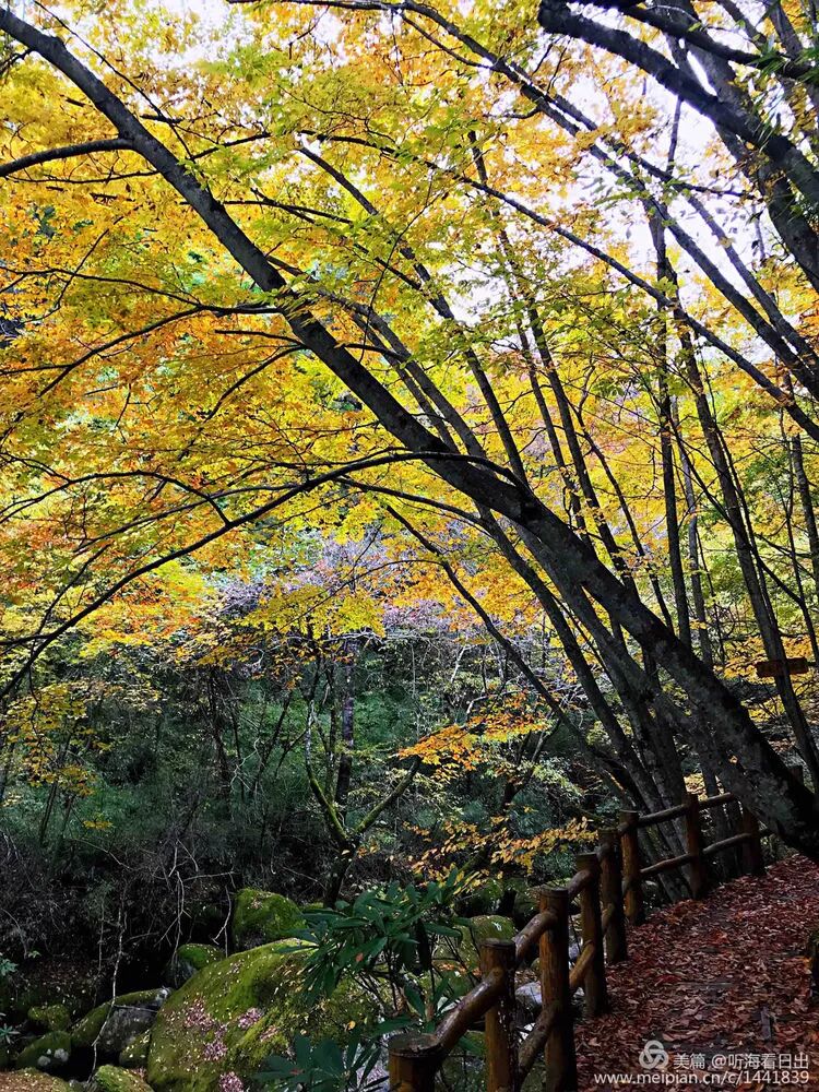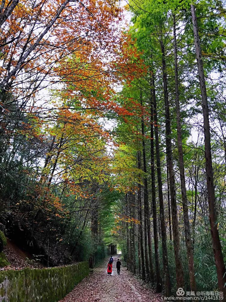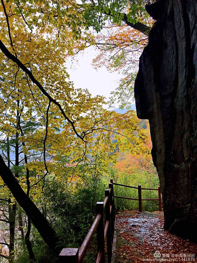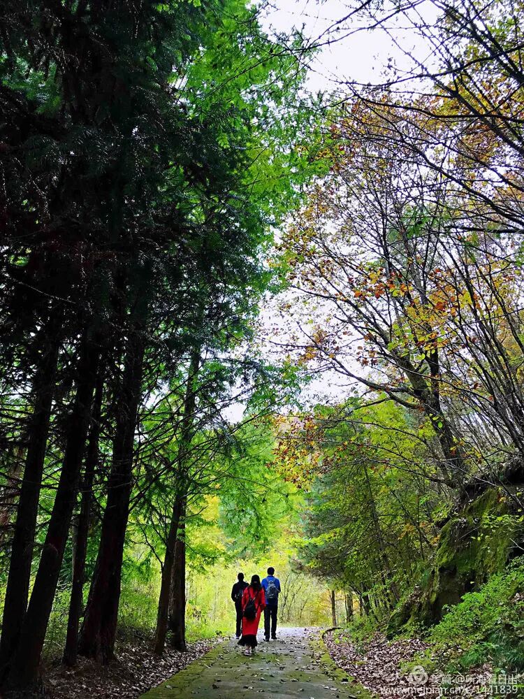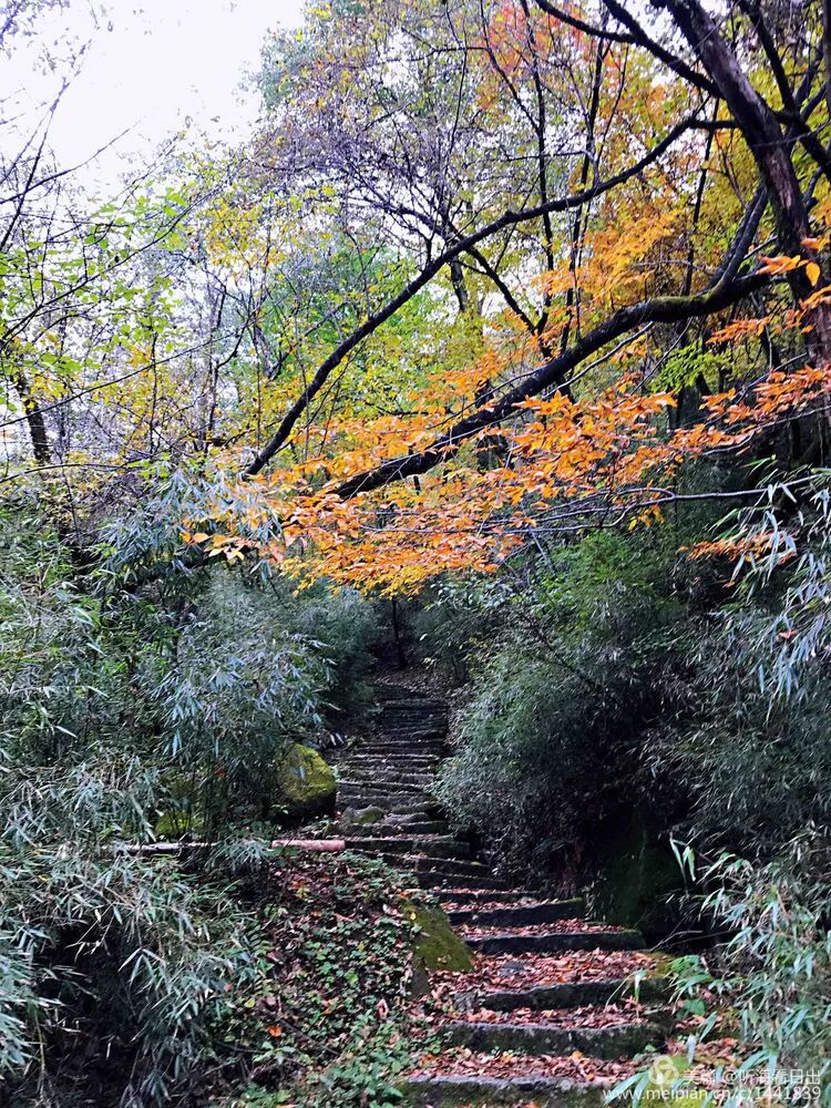 景区的路都是清一色石条铺成,上面已落满了树叶,远远望去别有一番秋韵。