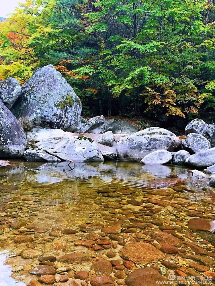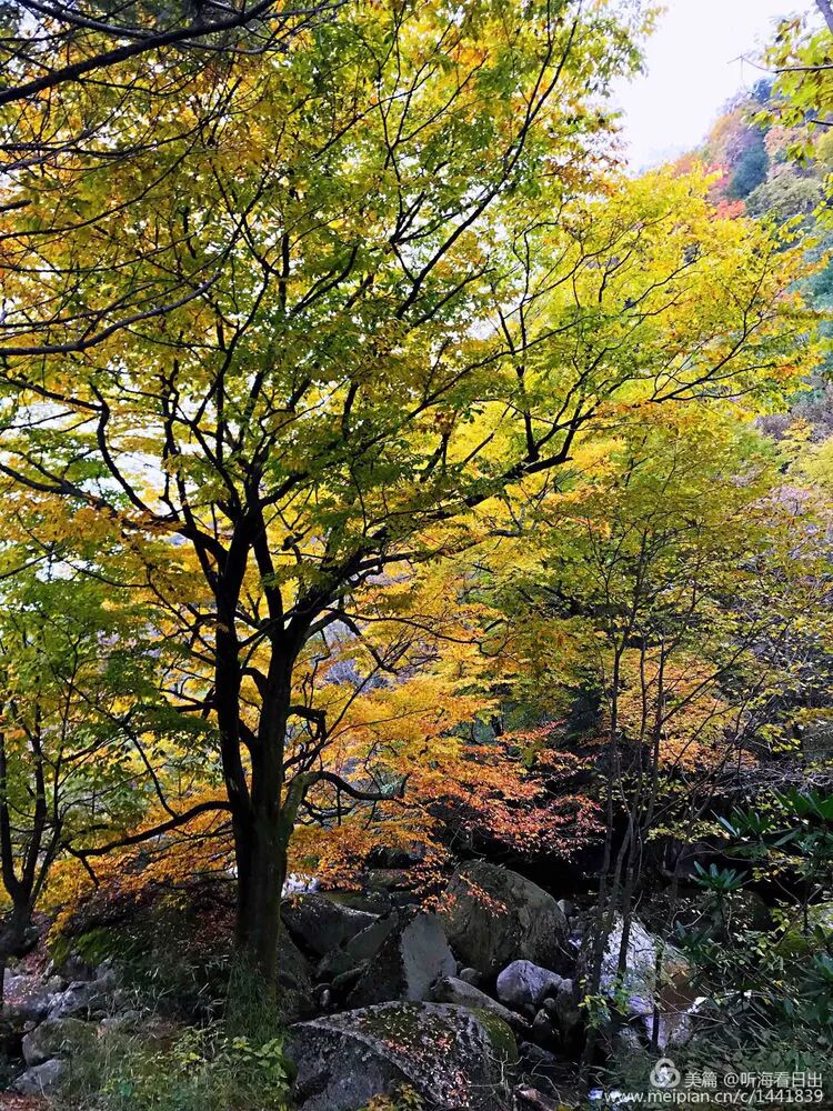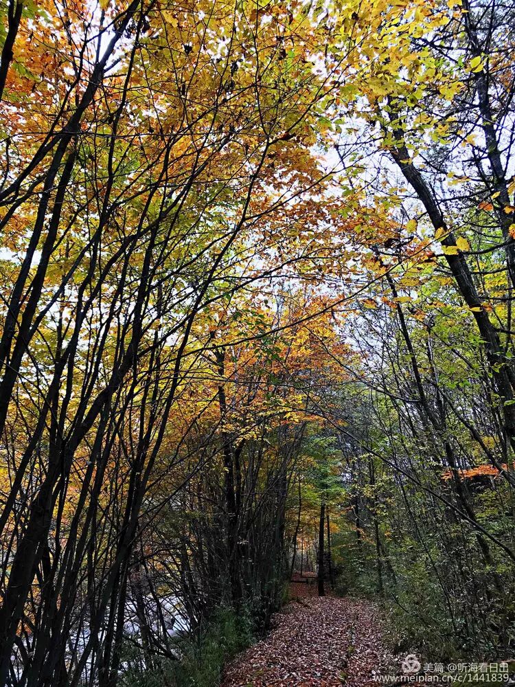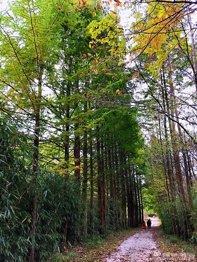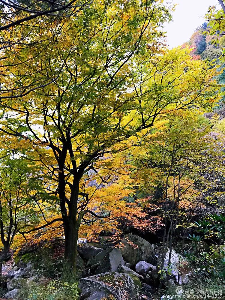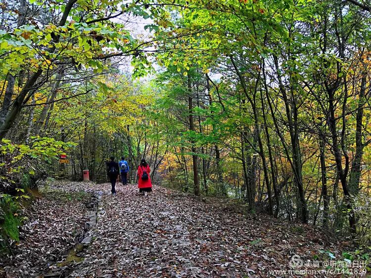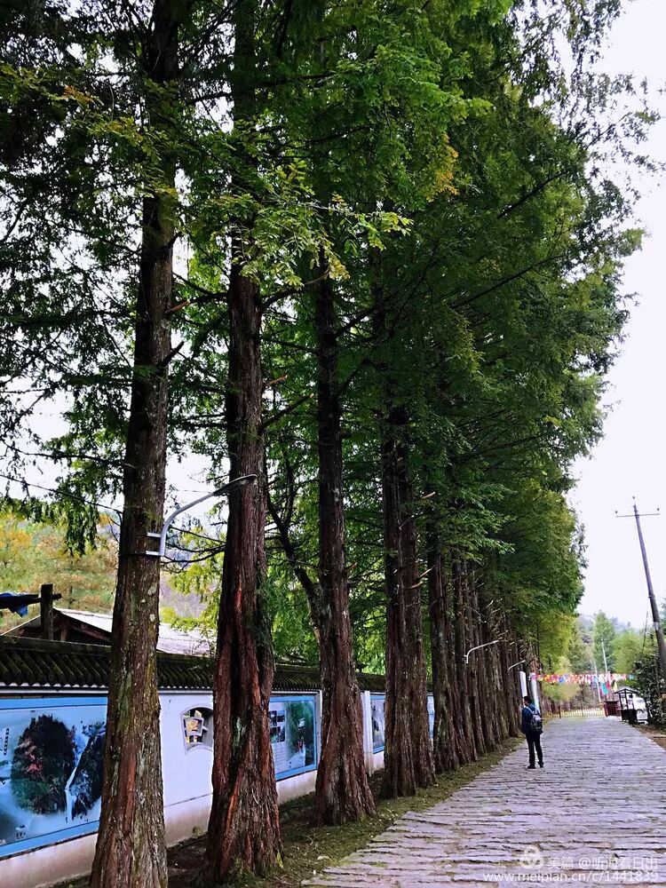 景区的路都是清一色石条铺成,上面已落满了树叶,远远望去别有一番秋韵。