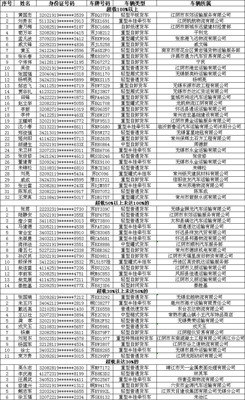 这简直是拿生命开玩笑!交警部门还公布了10月超载违法曝光名单▼▼▼10月超载违法曝光名单