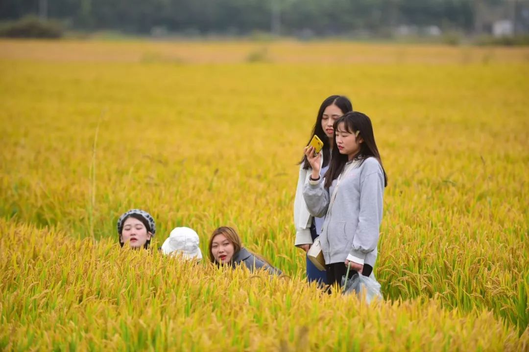 领/略秀美田园风光稻田里目之所及满是令人心醉的金色。随着阵阵稻香扑鼻而来,市民朋友们一起见证勤劳与收获,用相机拍下眼前的美好风光,分享丰收的喜悦。