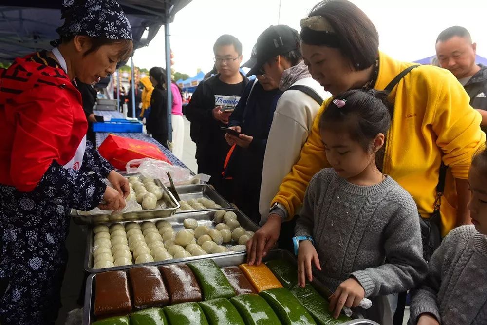 秋收集市汇集了大米、鸡头米、五谷杂粮、土鸡蛋、青白团子、推酥麦饼、茅塘桥猪头肉、豆腐花、醉蟹、无锡小笼等各类乡村特色农产品和美食,浓浓的乡村风味吸引了吃货朋友们的驻足。
