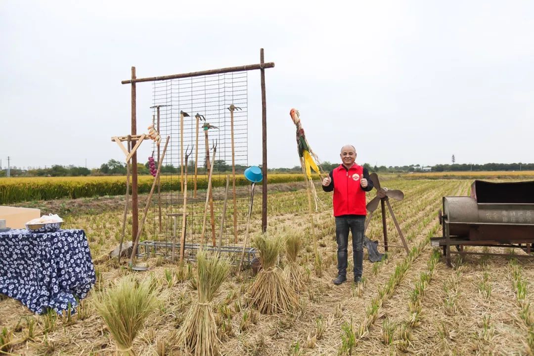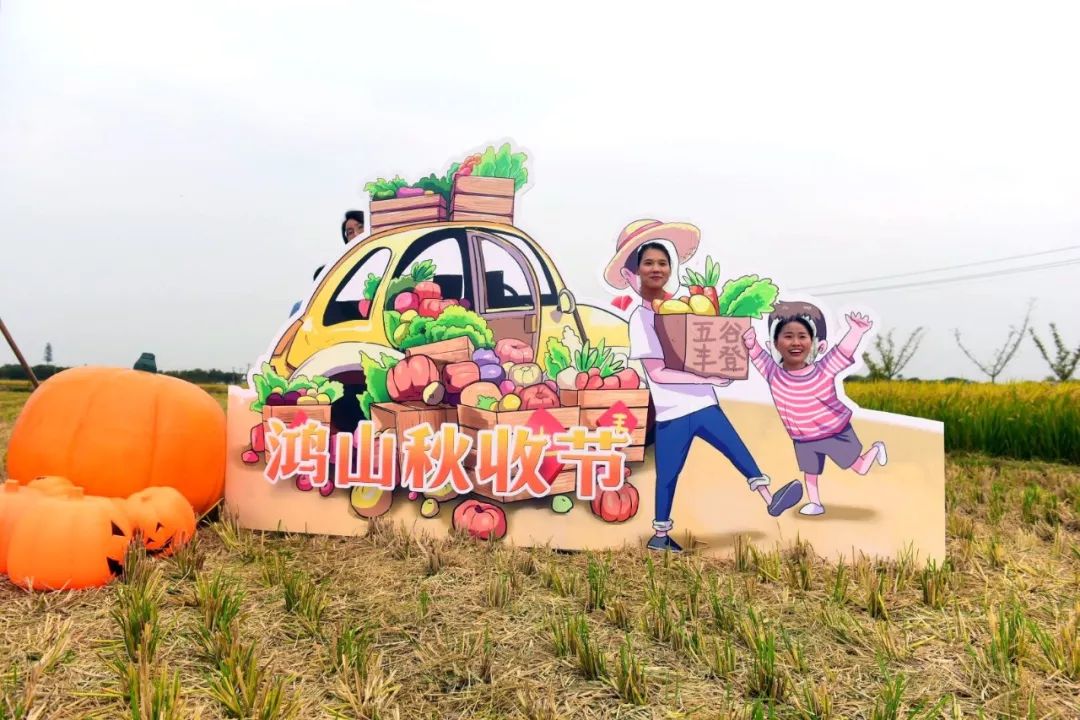 徒步沿途设置五个打卡点,五谷丰登、稻草垛、晒稻谷、传统与现代农具等场景布置,充分展示了金秋时节鸿山热火朝天的丰收景象。