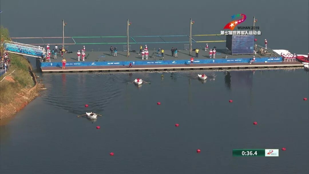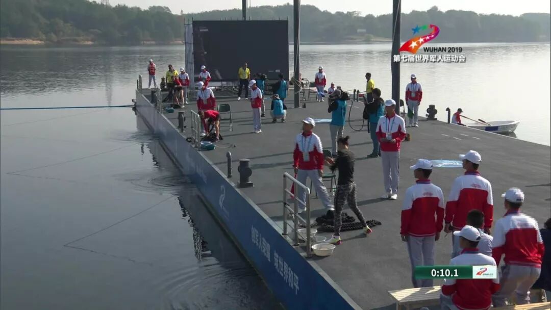最终,由谢荣华和李顺组成的中国女队以01分36秒68的成绩领先芬兰队夺得第一,男子组卫亚东 郭子愿 杨锦也战胜巴西队拿下男子障碍接力冠军,至此,中国队包揽了本届军运会海军五项的全部金牌。