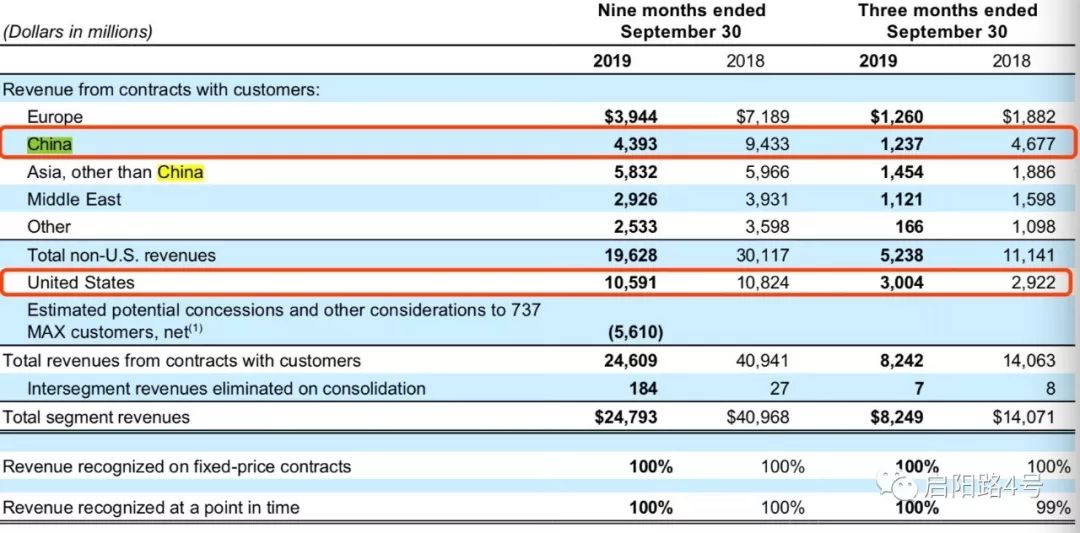 在商用飞机业务线营收表格中,唯二两个单独列出的国家就是中国和美国。