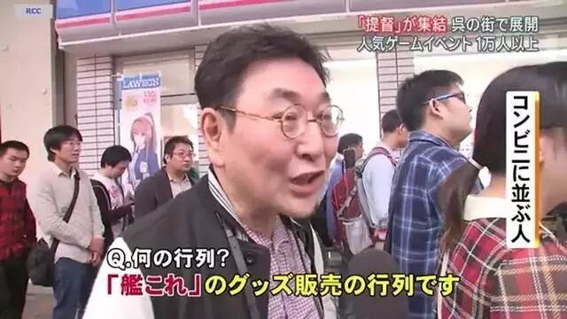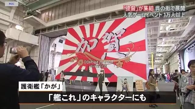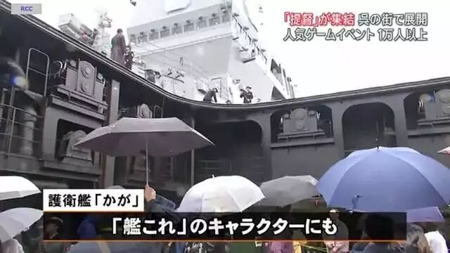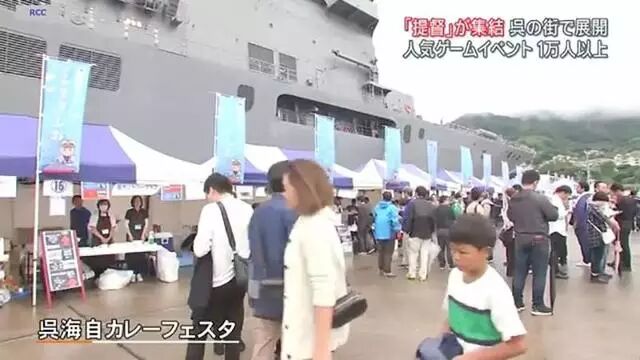 话说岛国自卫队上个星期日(10月20日)在广岛县吴市的基地举办亲民活动,还开放大家参观护卫舰加贺(かが),又因为同时跟热门游戏《舰娘collection》合作推出特制周边商品以及COSPLAY活动,令全日本超过一万名的「提督」们都在周末挤爆吴市狂欢,当地电视台也为这个罕见活动制作特别报导,有趣的是记者还跑去访问当地的大妈,她们也不知道为什么平常都没什么人的街上会突然冒出一大堆人啊!