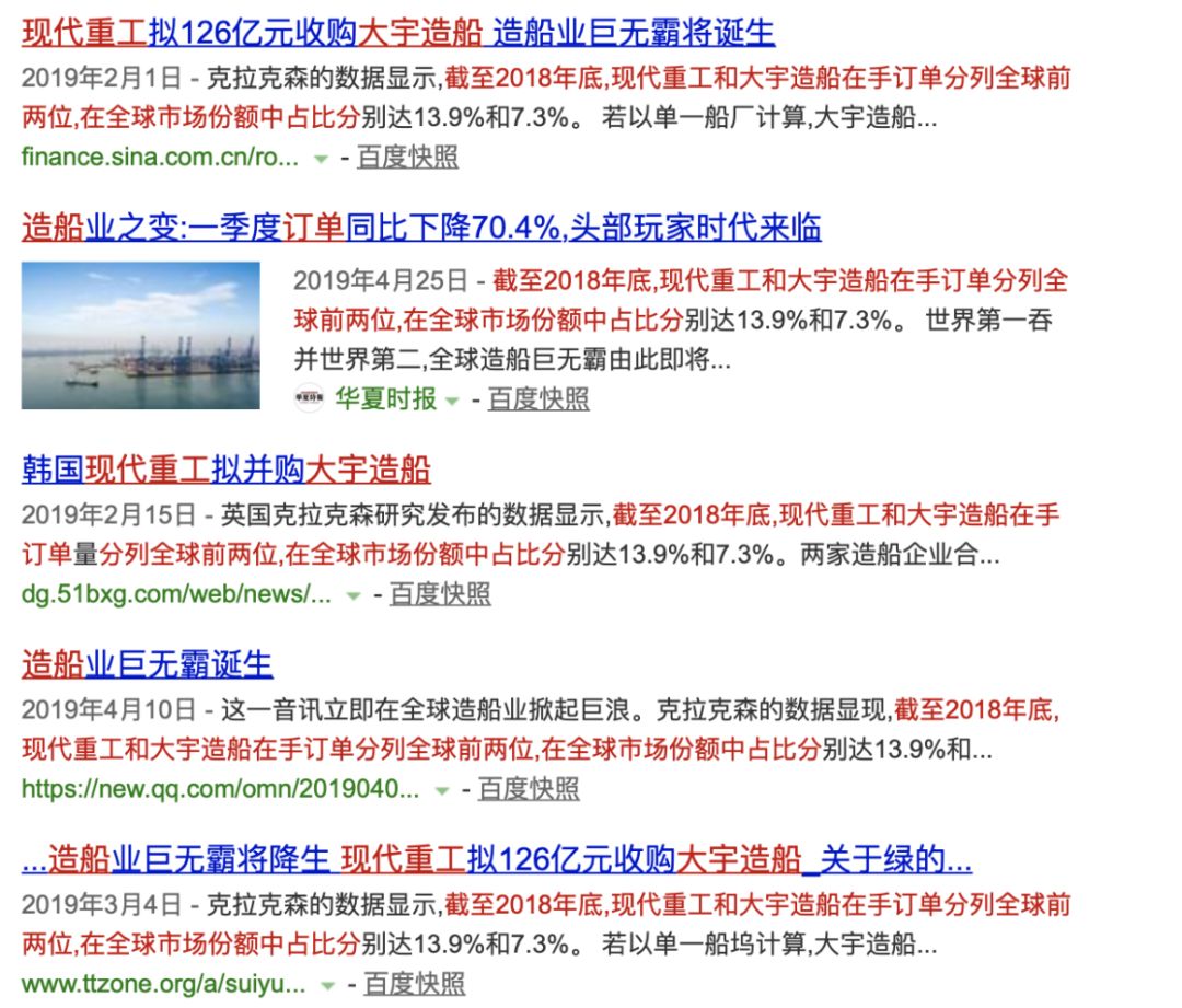 3月8日,韩国现代重工合并大宇造船进入最终审议,大宇造船最大股东韩国产业银行(KDB)与现代重工正式签约,将向现代重工移交股份。截至2018年底,现代重工和大宇造船在手订单分列全球前两位,在全球市场份额中占比分别达13.9%和7.3%。