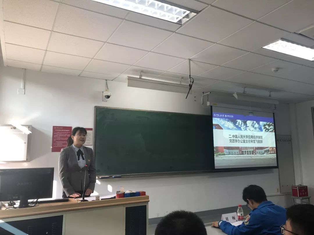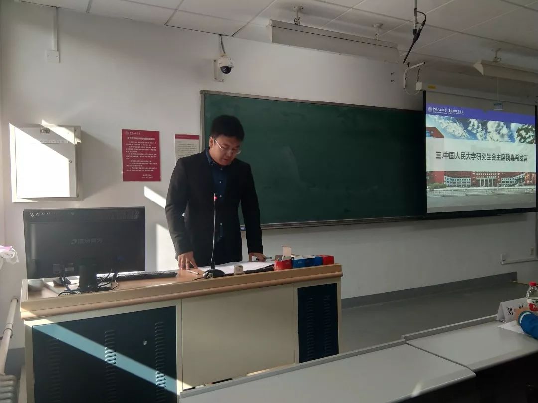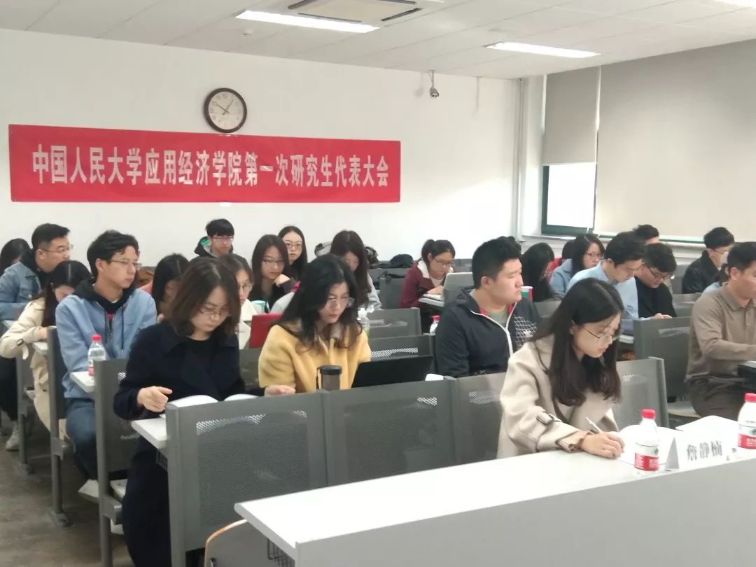 10月26日上午,中国人民大学应用经济学院第一次研究生代表大会在公共教学三楼3205召开。出席这次大会的35名代表来自全院 14 个研究生班级,代表着全院 256 名研究生。本次会议邀请了我院党团学办公室主任宋雪飞老师、院团委副书记刘畅老师、校研究生会主席魏嘉希、财政金融学院研究生会主席詹静楠。