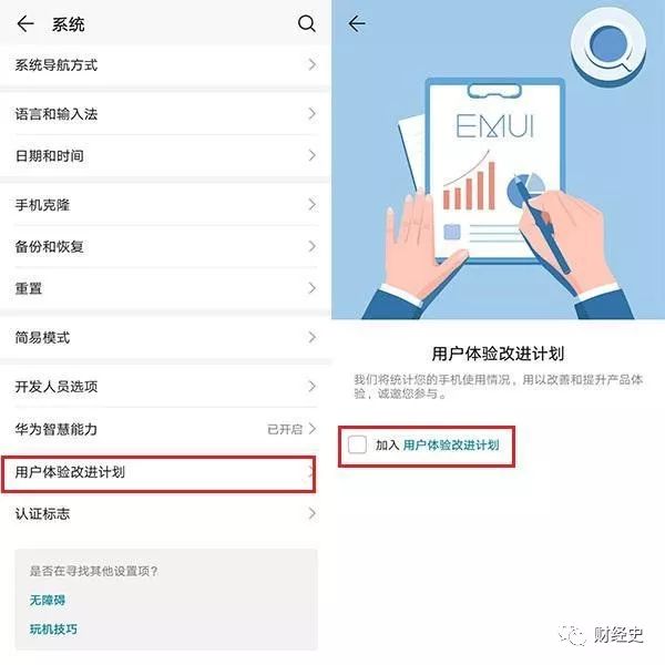 关于这个功能,是华为官方所统计我们手机中的使用信息,然后根据手机中的所反馈的情况对于之后的手机进行改进。但是并没有什么用,在后台运行还会影响手机,而且更耗电,所以我们可以将这个不实用的功能关闭。