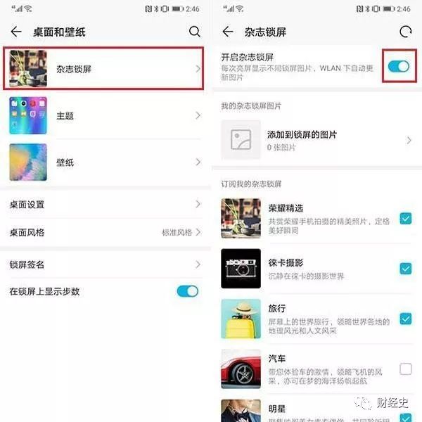 操作方法:设置——桌面和壁纸——杂志锁屏(关闭)
