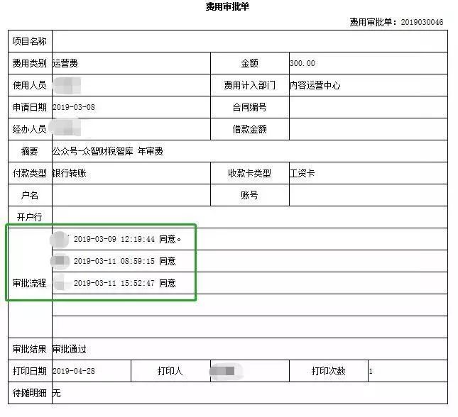 同时,报销人员需将费用报销单打印出来,附上相应发票,提交给部门秘书。