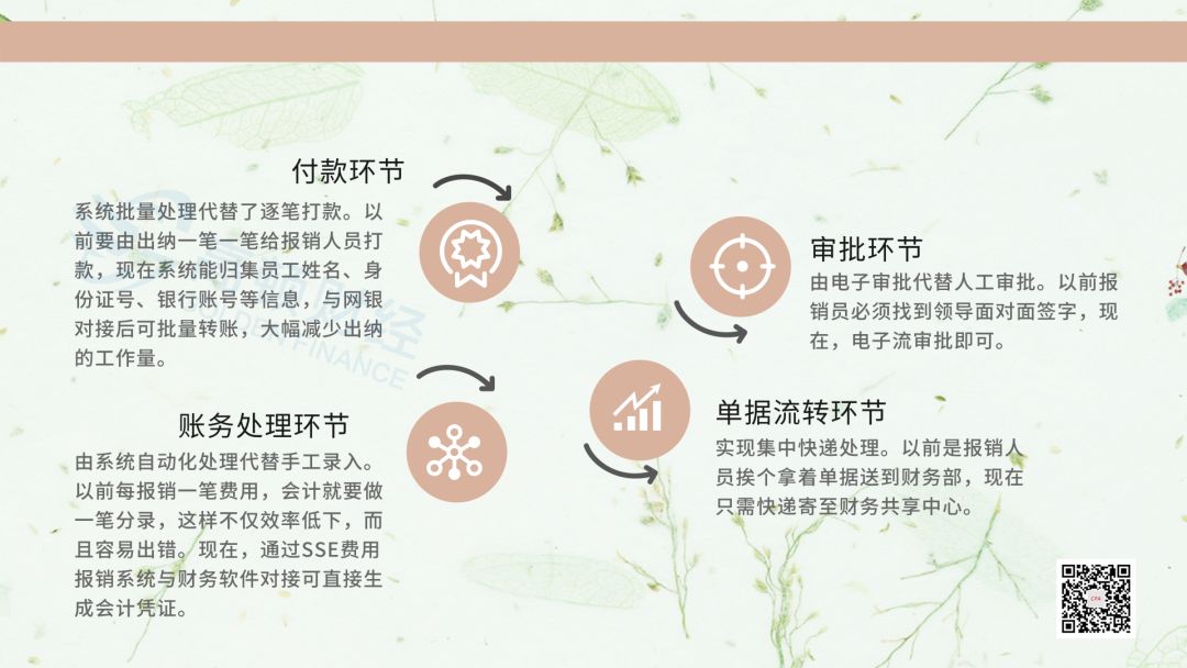 十年前,智能手机尚未普及,华为就已在互联网上开发了SSE费用报销系统。 华为公司因业务特点,拥有遍布全球的客户群与员工队伍,员工的费用管理与报销对于财务部门来说是一项非常复杂的工作。基于此,公司采用SSE对员工费用进行管理,在节约了人力、物力的同时也收到了良好的管理与控制效果。能上网的地方华为员工就能登录SSE系统填写费用报销单,填写完毕后费用报销单系统会自动提交领导审批。
