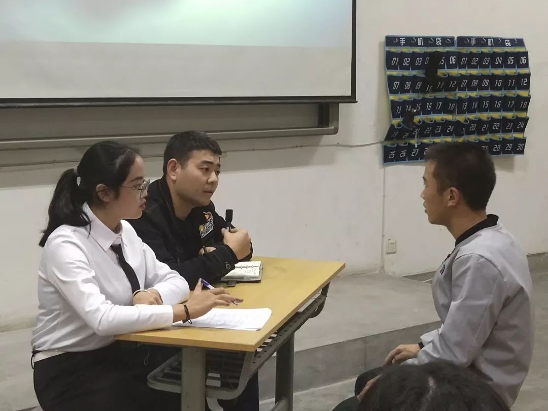 面试官”复赛于2019年10月23日19:00在教1-404如期举行,出席本次大赛的嘉宾评委由参加过全国大学生HRU大赛并取得优异成绩的白小宇、惠春雪、李诗冉、田静以及李京廷等同学组成。