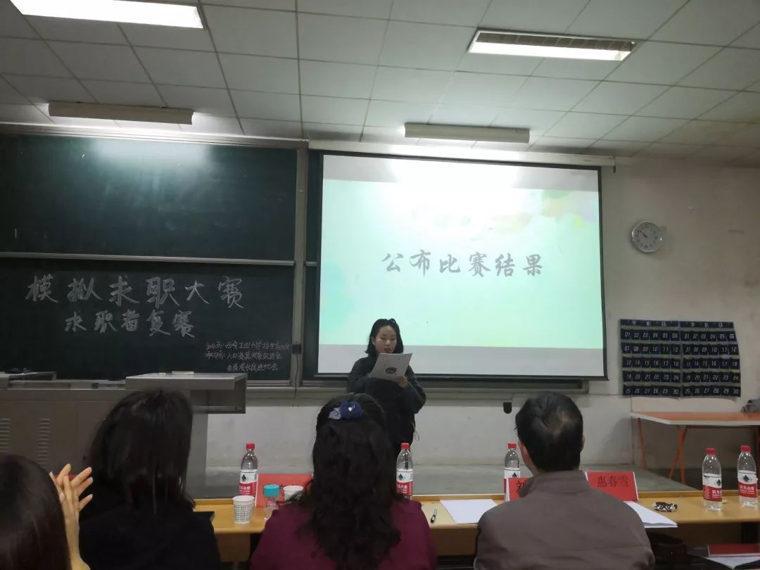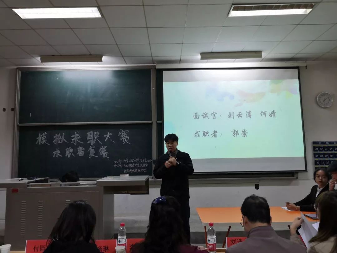 比赛过程中,评委老师根据个人的综合表现进行点评并打分。人力资源发展促进会副主席程诗雨同学宣读进入决赛的“求职者”名单。