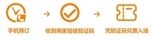 1.手机下单预订 → 收到验证码 → 凭验证码入场