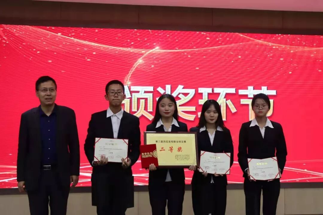 我校与长安大学、西北政法大学获得优秀辩风奖,西北大学、西安欧亚学院、西安交通大学和西安培华学院分别获得优秀团队奖。