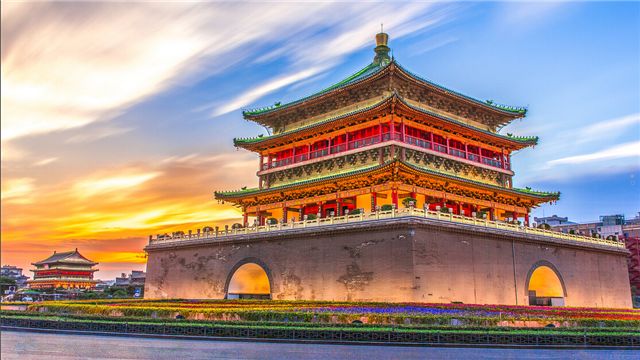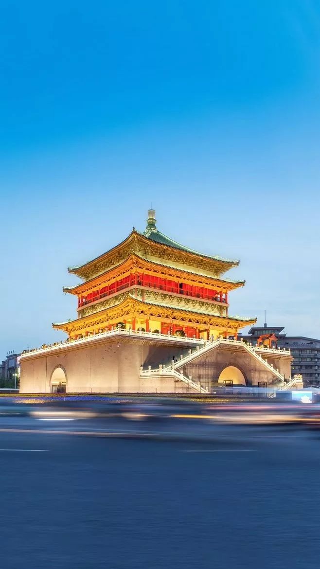 西安钟楼是西安标志性建筑物,位于西安市中心,东西南北四条大街的交汇处,在不远处就是鼓楼,两座楼遥相呼应充满历史典故与传奇的味道。