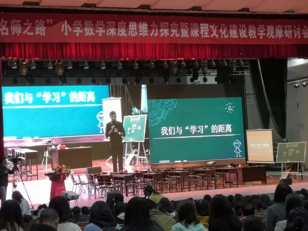 课后,徐斌老师以《无痕教育的课堂实践策略》为主题做了学术分享,徐老师围绕数学教学中实施无痕教育的四大策略:不知不觉中开始、潜移默化中理解、循序渐进中掌握、春风化雨中提升做了详细解读,并指出教学应遵循儿童的动作思维,形象思维,逻辑思维三种思维水平的顺序,教学设计要建立在对儿童了解的基础上,这样的教学才是合拍的教学。
