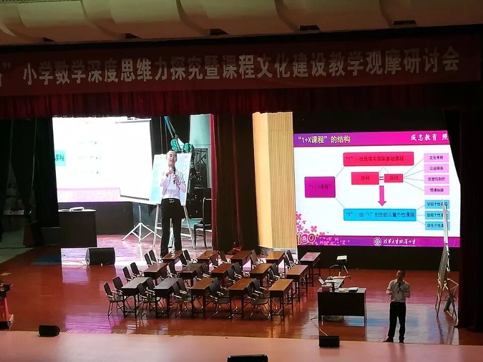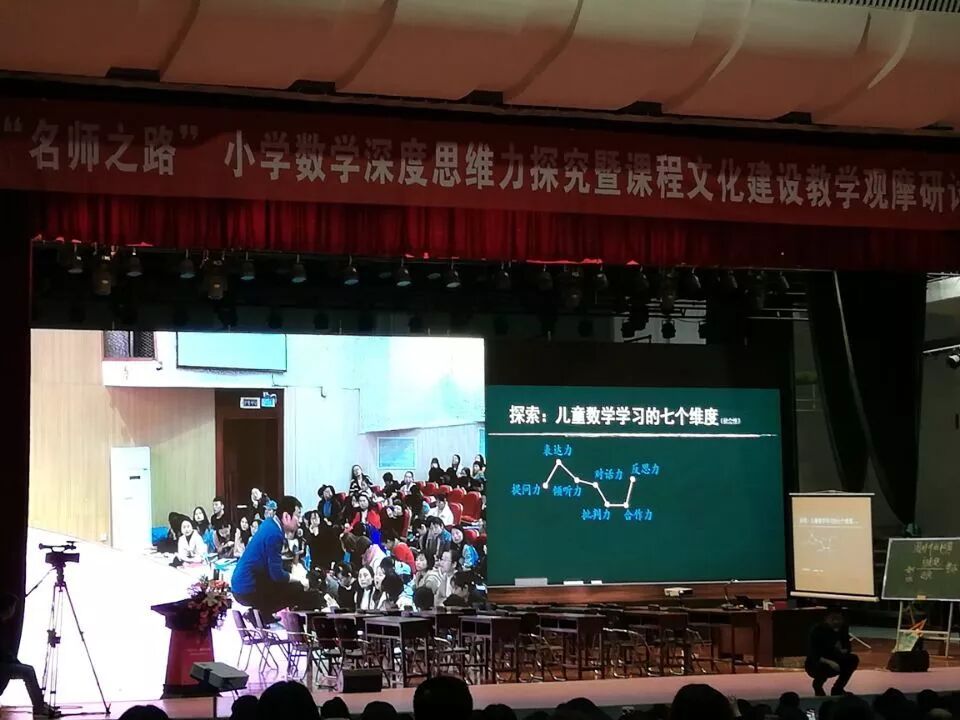汤老师以《“整合数学”课程的探索与实践》为题做了学术报告。汤老师强调,所有一切要以儿童出发,让儿童站立学校正中央。汤老师讲述了清华附小一个学生、一个班级的年度故事,提出对于低年级的学生要呵护兴趣,中年级要呵护乐趣,高年级要呵护志趣的教育观点。