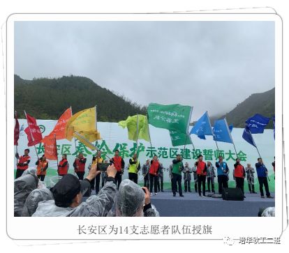 大会中,长安区为秦岭子午峪保护总站、秦岭生态环境保护法庭、秦岭生态环境保护检察室、秦岭生态环境保护警务室、秦岭生态环境保护研究会、秦岭生态环境保护协会等6家单位授牌,为14支志愿者队伍授旗,为6个秦岭保护爱心企业、单位颁发荣誉证书,并宣读《秦岭保护倡议书》,全体参会人员集体宣誓,为秦岭生态环境保护贡献一份力量!