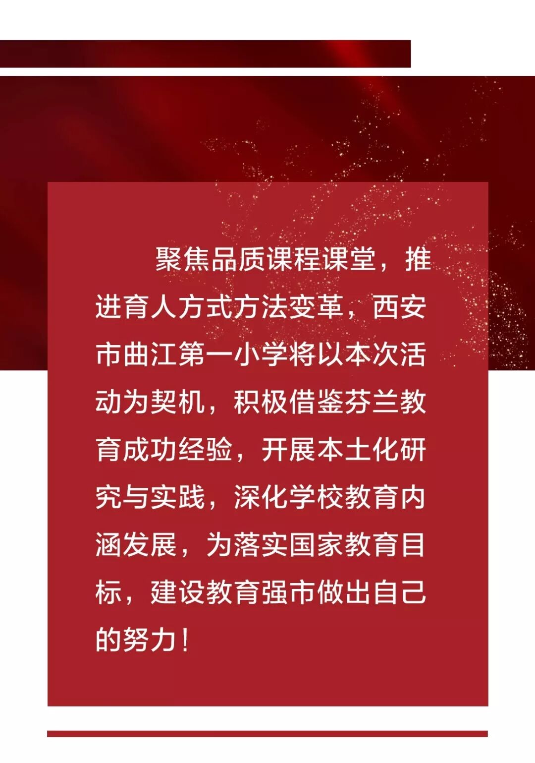 “教科所一直致力于通过促进学校课程变革促进教师教育教学方式的变革,达到学生学习方式的变革,用课程助推西安教育的内涵、特色发展。相信芬中教育协会与曲江一小的合作不仅会加速学校的发展,更会带动区域内各校教育教改真正落地。”