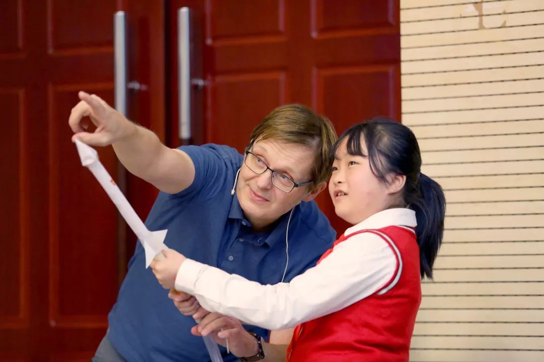 源于教材,高于教材。课堂上,Matti博士从孩子的角度出发设计教学,与学生真诚对话,从材料、技术、工程设计、艺术等多个方面引导学生充分体验、探究、实践,获得新知。在这样平实而不失热情,朴素又知识力满满的课堂上,孩子们制作火箭、发射火箭,好奇地参与互动,兴趣盎然!