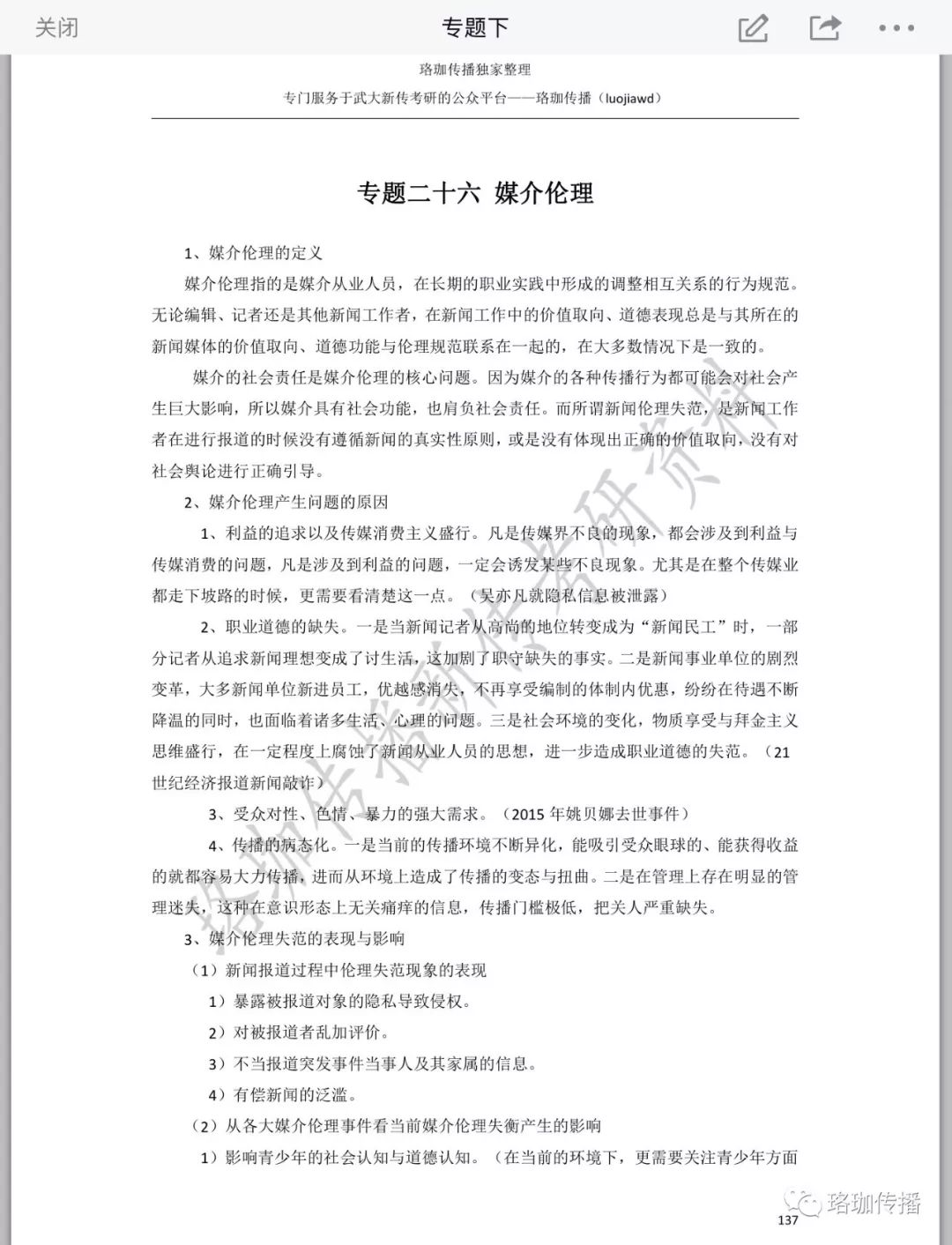 2020版的专题合集分为上下两册,上册为基础知识篇,分为24个新闻传播专题,合计16万字;下册为综合提高篇,分为28个新闻专题,合计15万字;上下两册共52个专题,是武大新传复习中期后期人手一册、整合必备的复习资料。