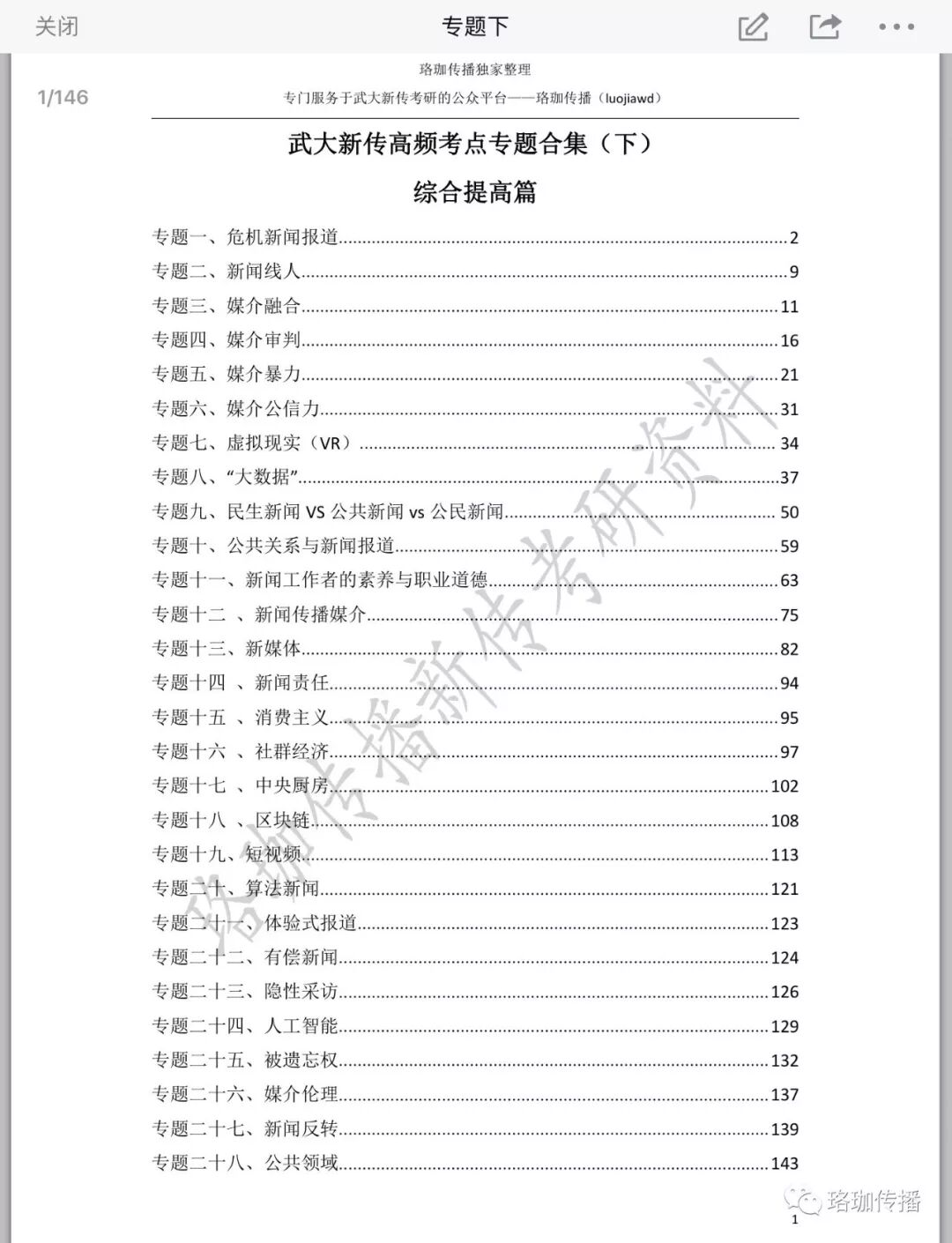 上面就是我们《2020版武大新传高频考点专题合集》真面目,这次专题限量100份,我们希望明年考上的同学可以帮我们宣传——我们做的一切是为了让同学们顺利进入武大。
