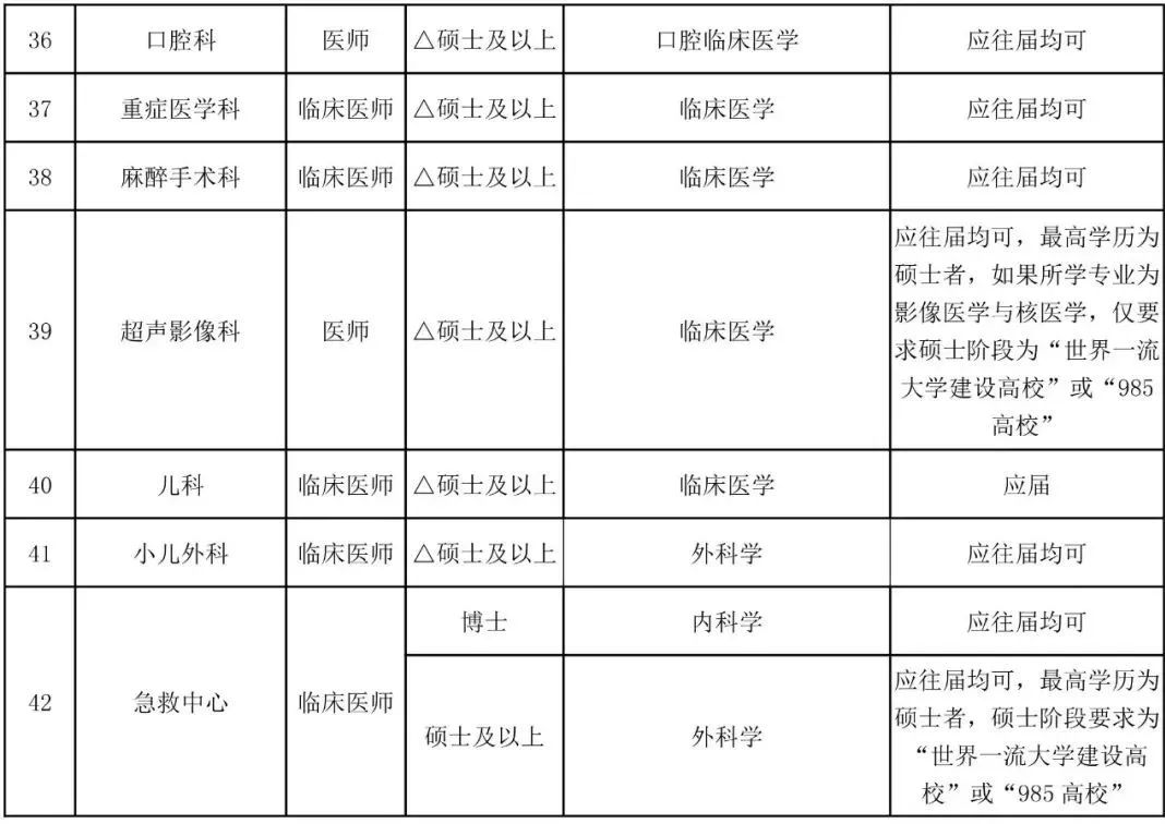 2、学历要求中,“△”是指最高学历为硕士者,本科及硕士阶段均要求为国家“世界一流大学建设高校”或“985高校”的毕业生。