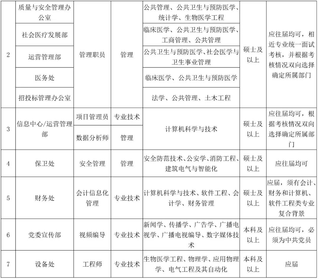 注:应聘以上部门者在网上申请系统中的“应聘科室”处只能填写一个意向部门。
