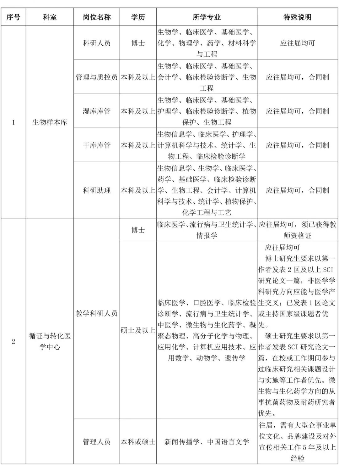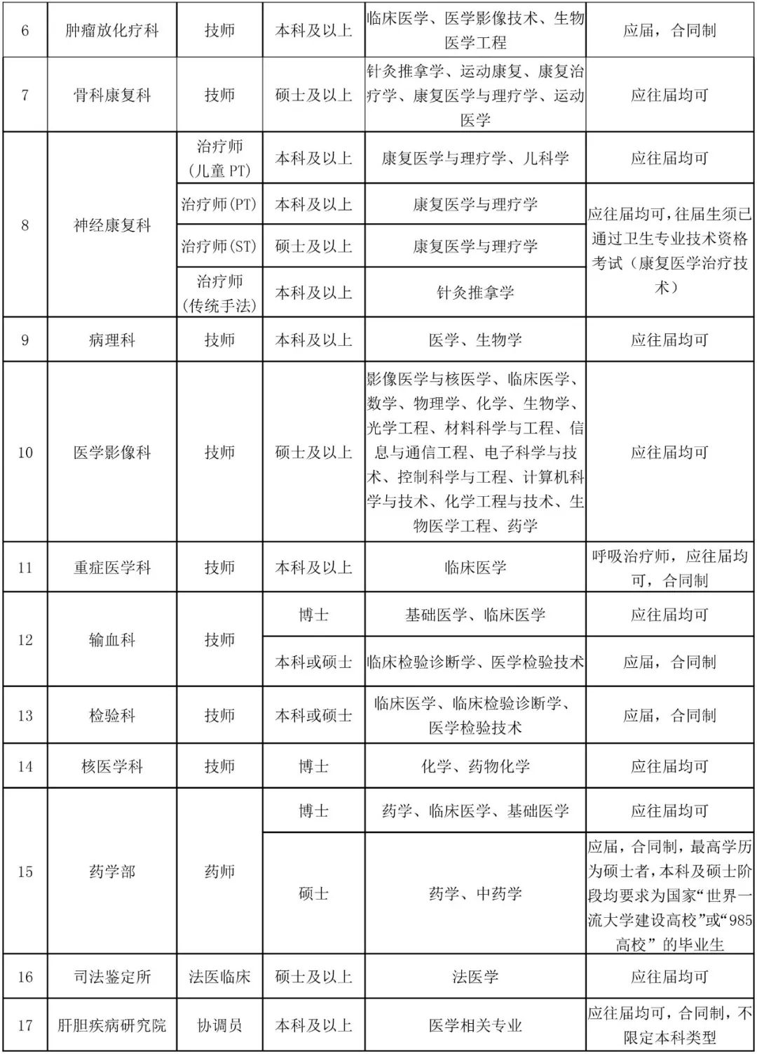 一、医学人才(常年招聘)