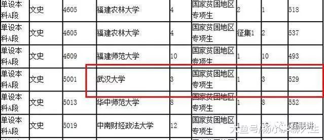 据录取结果显示,武汉大学全国贫困生录取分数线为529分,甚至低于福建农林大学的537分。