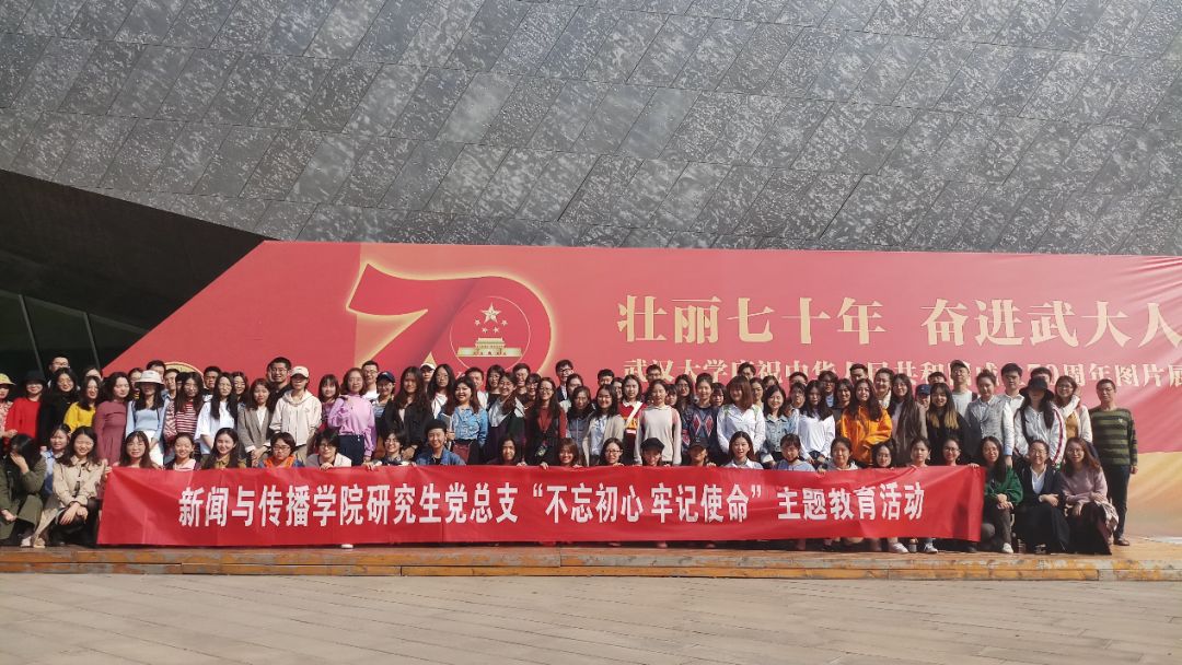 10月18日下午,武汉大学新闻与传播学院研究生全体党员共聚武汉大学万林艺术博物馆,参观了“壮丽七十年,奋进武大人——武汉大学庆祝中华人民共和国成立70周年图片展”主题展览。
