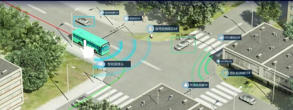 将三维模型作为底图,搭载传感器的车辆,通过移动通讯技术、汽车导航系统、智能终端设备与信息网络平台,使车与路、车与车、车与人、车与城市之间实时联网,在庞大的云计算能力和通信能力的支撑下,让无人驾驶车辆在军运村园区行驶变成了可能。