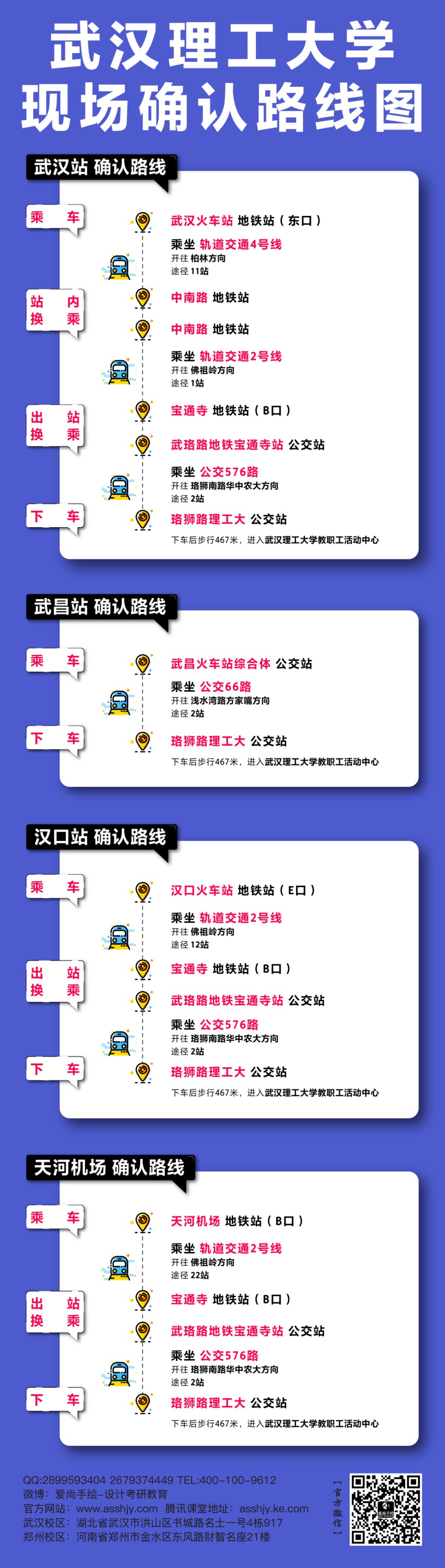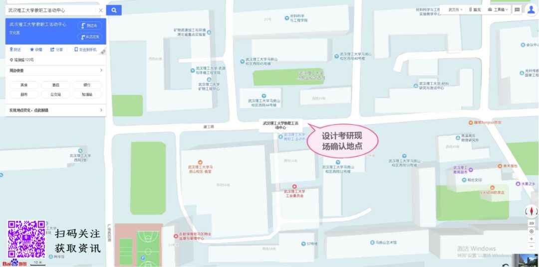 选择马房山西院工会活动中心完成现场确认的考生在武汉理工大学南湖校区参加考试;