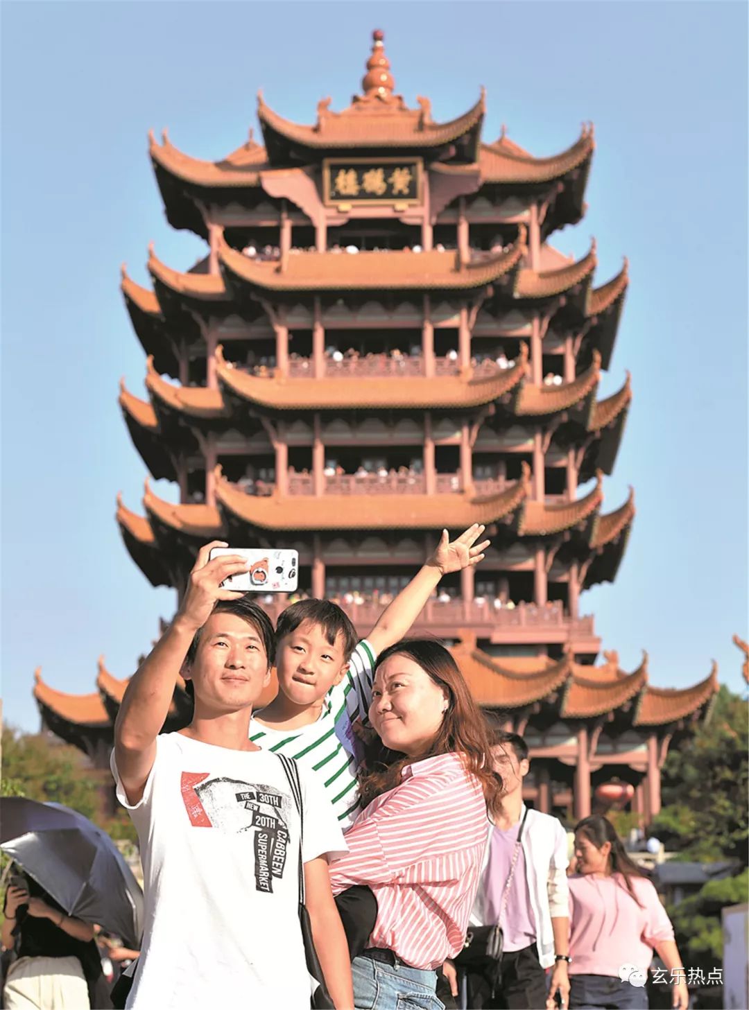 黄鹤楼景区游人如织。湖北日报全媒记者 魏铼 摄