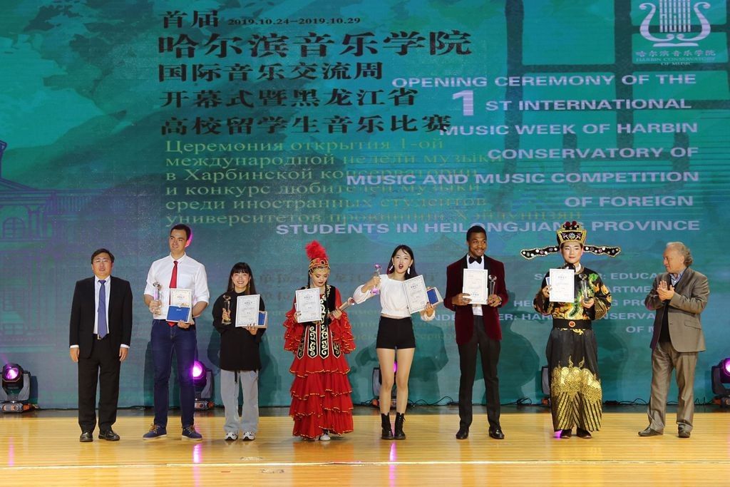首届国际音乐交流周特邀俄罗斯圣彼得堡音乐学院原院长、哈尔滨音乐学院名誉院长、著名小提琴家冈特瓦尔格先生,俄罗斯圣彼得堡音乐学院外事处处长、哈尔滨音乐学院特聘教授、俄罗斯钢琴家格拉祖诺娃女士,德国德累斯顿冯·韦伯高等音乐学院钢琴系主任、著名钢琴家岑齐佩尔先生,西班牙巴塞罗那加泰罗尼亚音乐高中教授、著名钢琴家萨里纳斯先生,爱沙尼亚音乐学院大提琴教授、著名大提琴家瓦雷玛先生,波兰波兹南音乐学院中提琴教授、著名中提琴家穆拉夫斯基先生,芬兰坦佩雷应用科技大学钢琴教授、著名钢琴家基洛先生作为比赛评委,为来自省内18所高校、176名留学生表演节目现场打分。
