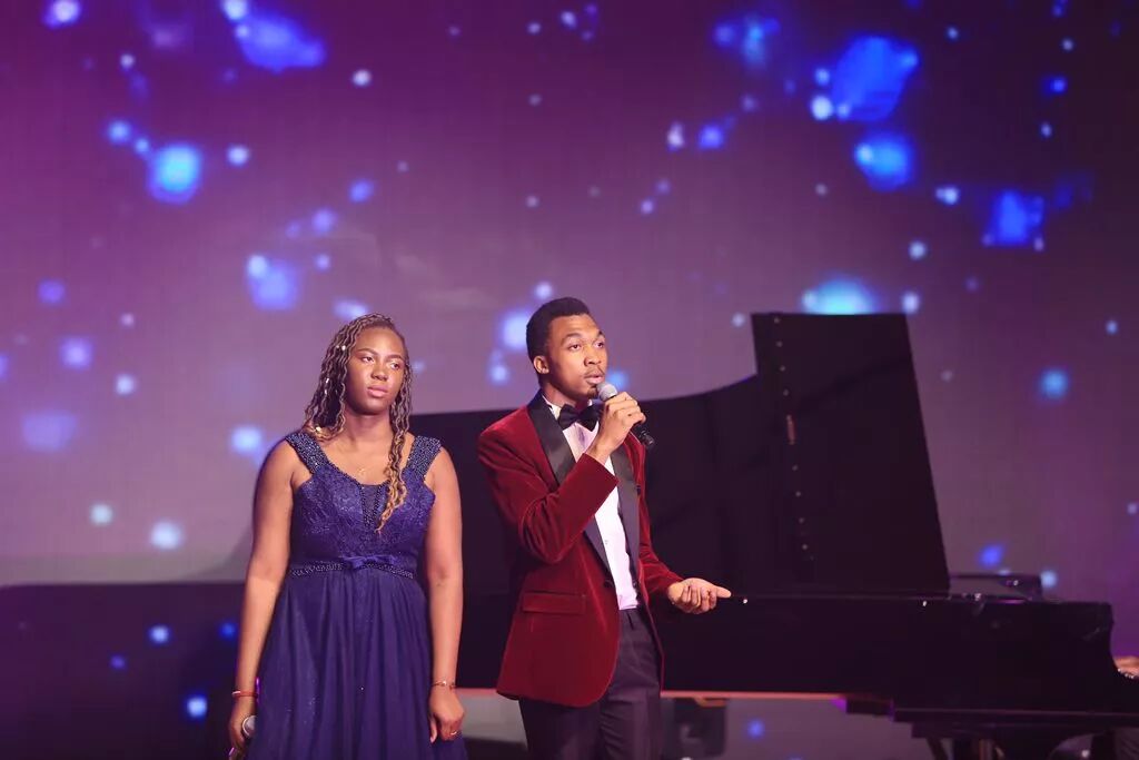 音乐比赛在由青年指挥家、我院博士研究生王春雨执棒哈尔滨音乐学院中俄室内乐团,携手我院钢琴系外籍教师安德烈·布格里诺夫演奏的《黄河协奏曲》第四乐章《保卫黄河》中拉开帷幕,来自哈尔滨工业大学、哈尔滨工程大学、东北林业大学、东北农业大学、黑龙江大学、哈尔滨师范大学、黑龙江东方学院、黑龙江外国语学院等省内18所高校的留学生各展其才,表演形式多样,既有富于中华民族文化传统烙印的歌曲表演《岐黄之声》《采红菱》《生僻字》等,又有极富民族特色的舞蹈表演《婆罗多舞》《骏马奔腾》《卡琳卡》等,更有热情奔放、激情四射的现代舞《The voice of street》《16 Shots Lip&Hip》《北极光》等,他们虽然有着不同颜色的皮肤,用着不是十分流利的汉语来演唱歌曲,但都表达出了内心对中国、对中国传统文化的喜爱,现场观众与台上选手频频互动,华美的舞台灯光与闪烁的手机灯光交相辉映,令在场观众如痴如醉、掌声不断,沉浸在留学生音乐比赛的视听饕餮盛宴之中。我院作为友情演出单位,为晚会带来了钢琴独奏《舒曼 叙事曲 op.21 No.8》,小提琴独奏《沉思》,晚会在由我院留学生马尔琴科独奏、罗曼诺娃协奏的小提琴曲《四季》中落下帷幕。