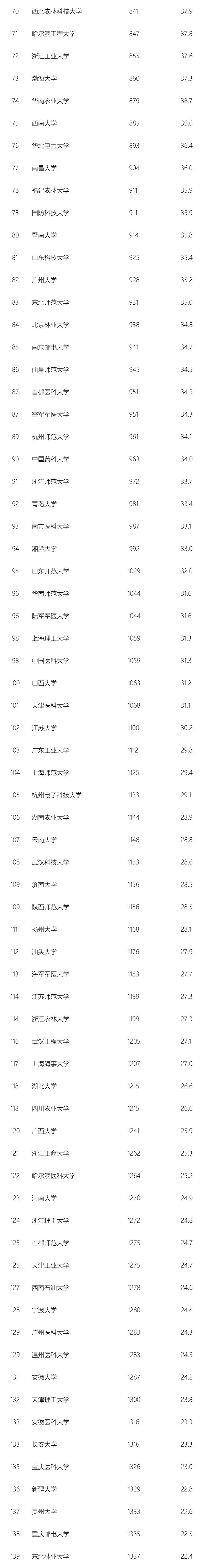 中国香港地区共有7所高校上榜,排名最高的是香港大学,居全球100位。中国澳门地区共有2所高校上榜,其中澳门大学位居全球575位,澳门科技大学居全球1044位。中国台湾地区共有26所高校上榜,其中排名最高的是台湾大学,排名全球186位,相比去年下降20位。