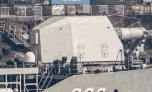 图为在海洋山号舰艏的不明模块,从各种消息可以猜测出,这是正在测试的国产电磁炮