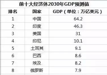 到2030年,美国国内生产总值预计将达到31万亿美元,印度为46.3万亿美元!关于中国的什么呢? !