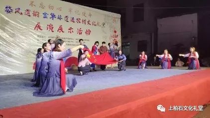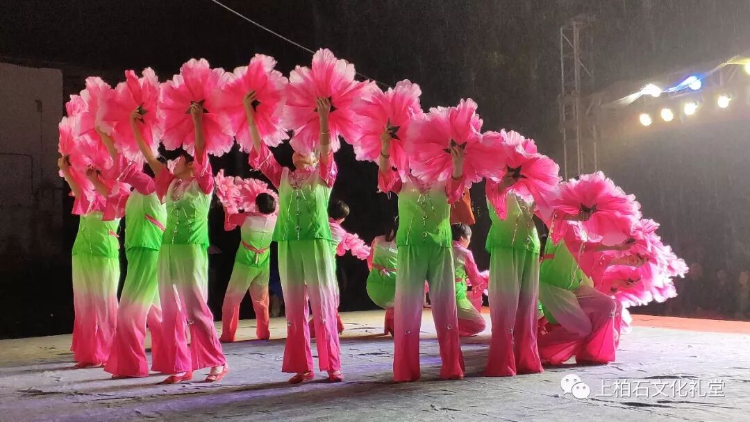 2018年上柏石村举办纪念改革开放四十周年村晚,节目全部来自本村,改革开放四十年村庄建设成就巨大,村民富裕,生活指标大步提高,村民由衷感谢中国共产党领导,自编《爱我中华》舞蹈,显示村民拥护中国共产党领导,永远跟党走进新时代。